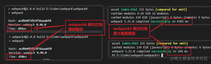 Webpack 5 发布已经有一段时间了,很多小伙伴都在考虑要不要升级,有没有升级的必要,不知道升级后有哪些改变; 今天我们就来做个对比看看,webpack5 带来了那些全新的改变; 没有对比就没有伤害,为了更好地伤害 webpack 4 , 我们使用 webpack4 和 webpack 5 分别构建一个 React 项目来做对比: