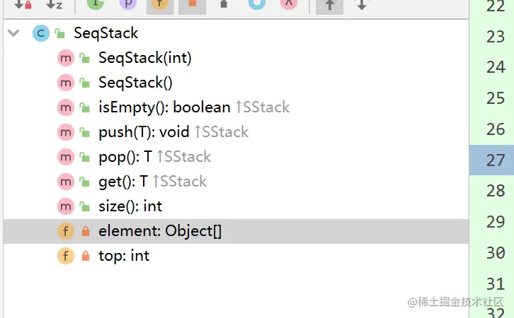 * 初始化容器时指定栈顶元素下标为 -1,所以直接通过当前栈顶元素下标是否为 -1 来判断当前栈容器是否为空。所以要求在入栈和出栈时维护栈顶元素下标值