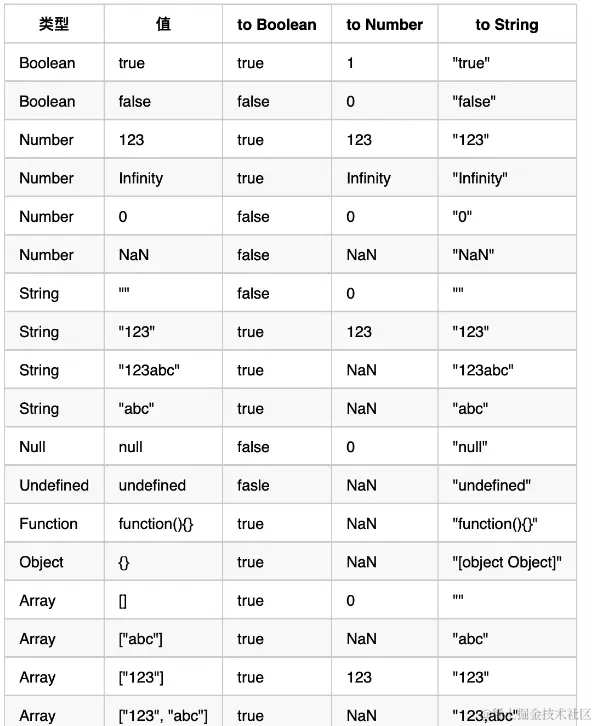 1、将值转为原始值,ToPrimitive()。 2、将值转为数字,ToNumber()。 3、将值转为字符串,ToString()。