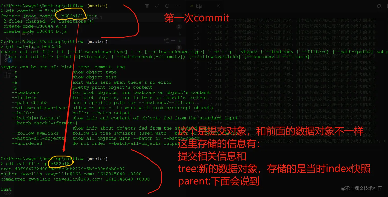 - 从正面角度,从init到add到commit角度出发分析