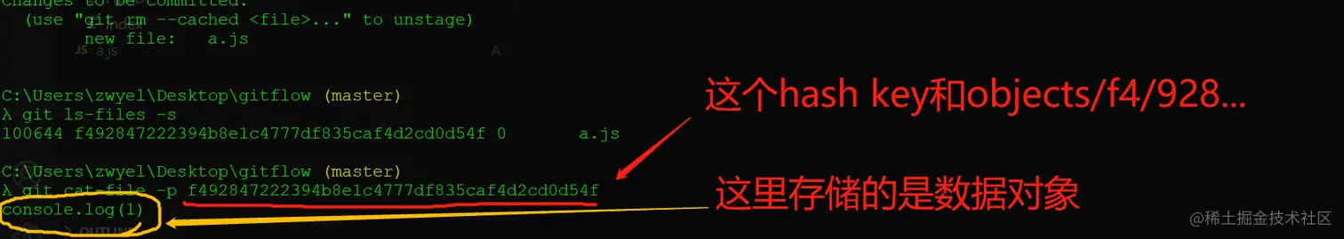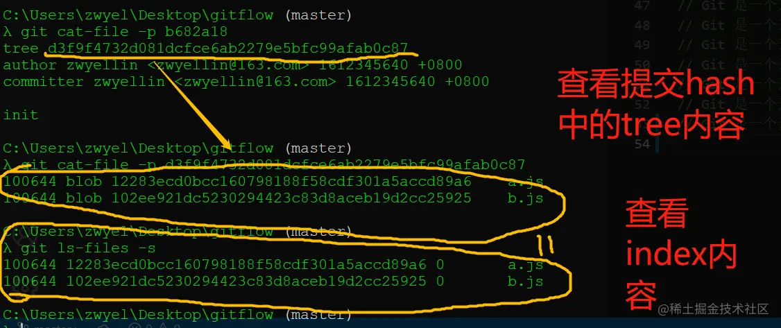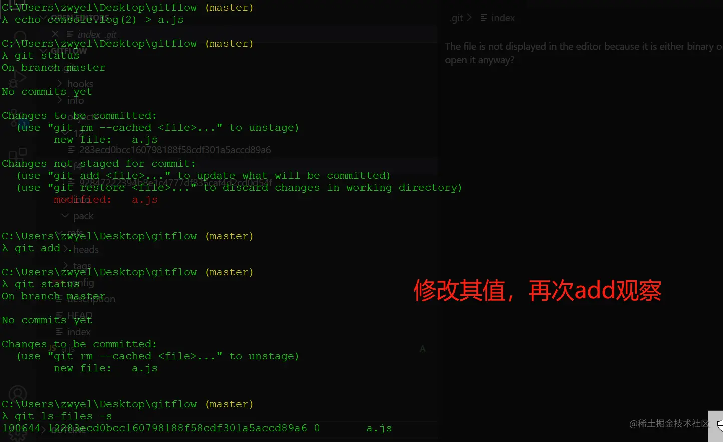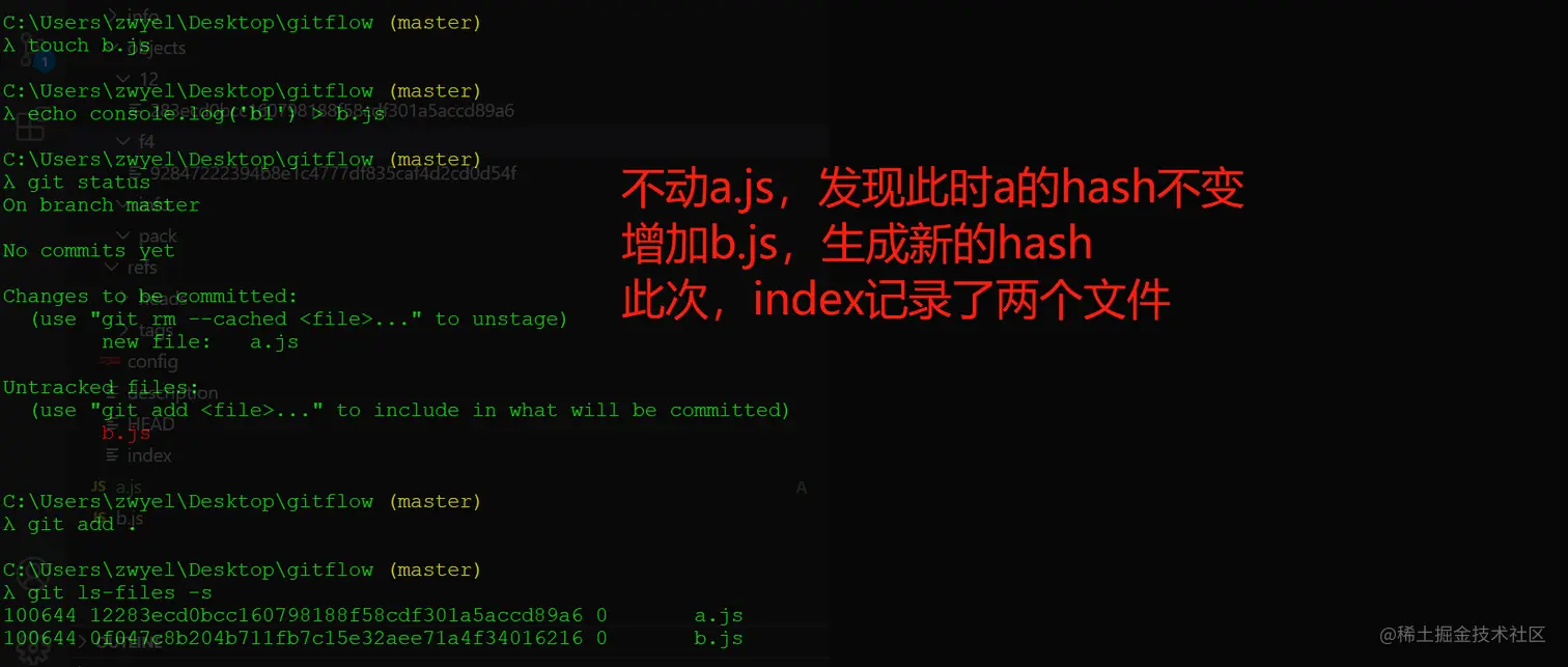 1、a.js继续添加,然后git add . // 查看Index内容:git ls-files -s