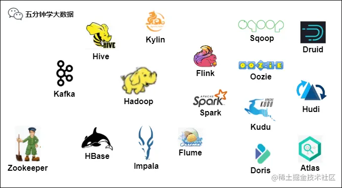 下图为 Apache 生态下的大数据框架: