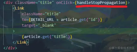 - 而直接在 Link 上设置 onClick 停止冒泡是做不到的,只能在 Link 外面再包裹一层元素,在 parents 元素上停止冒泡。