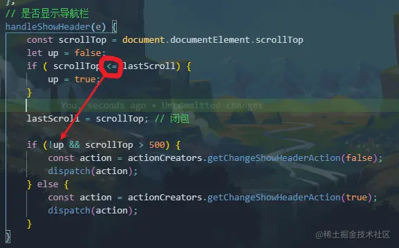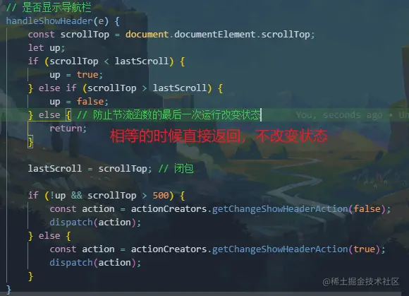 - 然而此时在判断的时候,scrollTop 和上次的 lastScroll 是一样的。