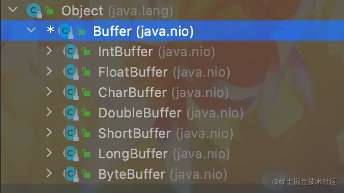 一共有7个类直接继承了Buffer类,这7个子类分别是除了boolean外的其他7中数据类型的Buffer类。