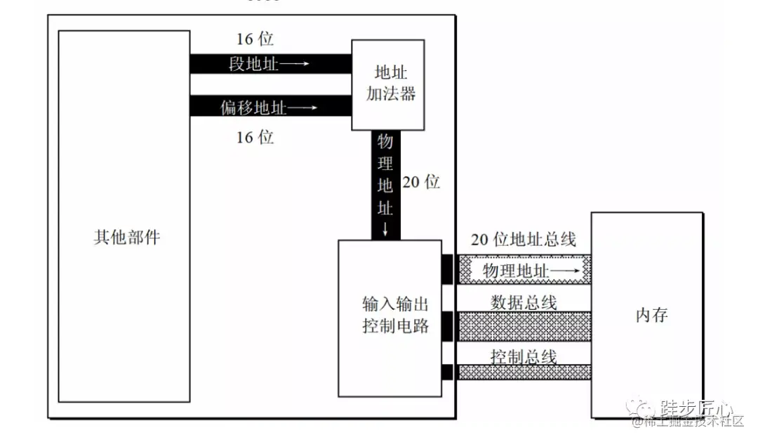 其实答案前面已经给出了,CPU 内部会通过「基础地址」+「偏移地址」的方法合成一个 20 位的地址。