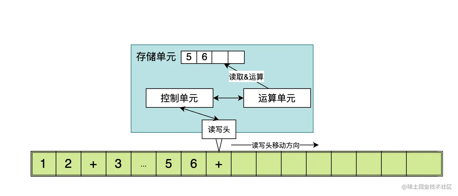 图灵机主要由数据存储单元,控制单元,运算单元和一个可读写外部数据的读写头几部分构成。