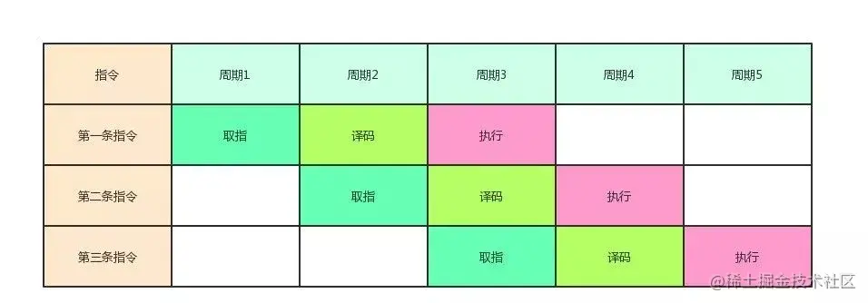 指令的执行包括取址、译码、执行。为了避免 CPU 每次获取指令都得从内存中获取,可以先将指令预读到 CPU L1-Cache 中;同时,为了让 CPU 的计算单元一直处于运算状态,可以使用流水线技术。