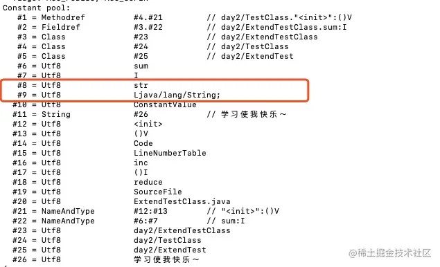 **u2 name_index:**0x0008 表示简单名称str,查询常量池#8
