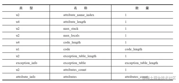 exception_info exception_table: 由于上一个参数计数为0所以这一项参数不存在