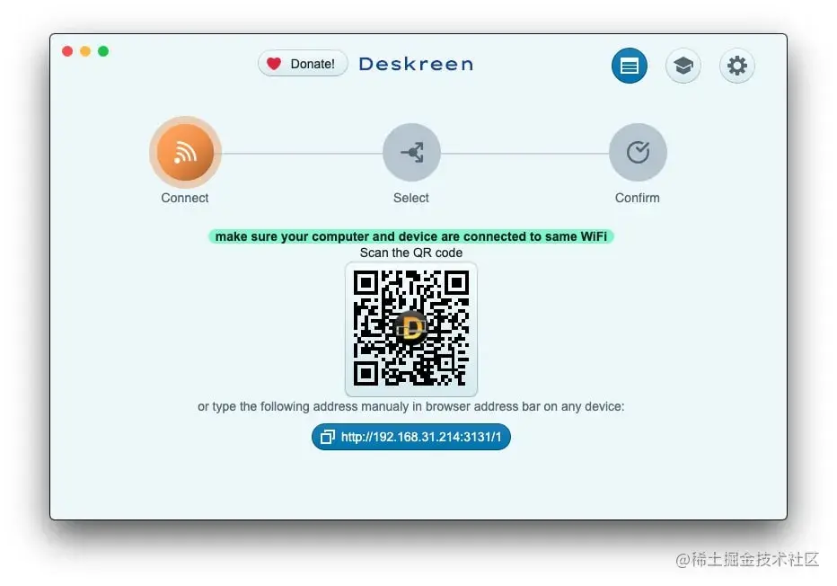 Deskreen将计算机屏幕共享到Web浏览器,这意味着使用Deskreen时,可以使用任何设备来扩展计算机屏幕,并且可以根据需要来连接任意数量的设备。