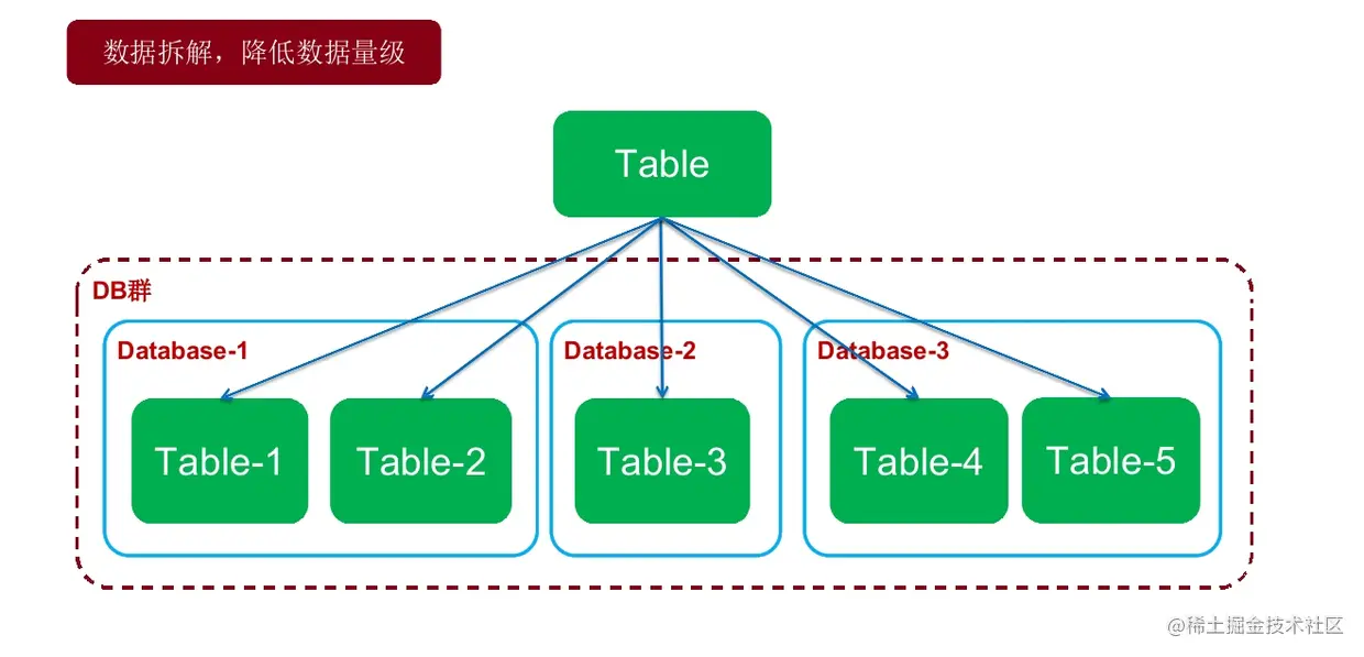 - 垂直分库:按照功能划分,把数据分别放到不同的数据库和服务器。例如:账户、资产、交易等业务领域不同的数据分别放在不同的库中,分散压力、减少相互影响、降低耦合,独立模块独立发布