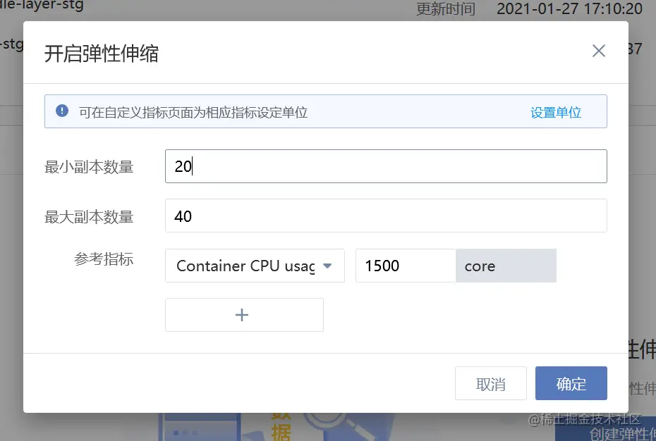 在K8S部署平台,可以为每一个服务指定初始的资源,以及节点数量配置。比如我们为SpringBoot应用初始配置,2core 4g的资源配置,节点数量则为20个。