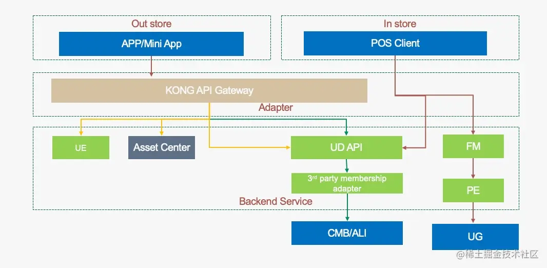 这个案例中采用了基于SpringBoot的微服务架构。结合企业自身的基础架构设施,进行K8S容器化部署,并采用Kong API Gateway对各业务中台暴露的API接口进行统一管理。