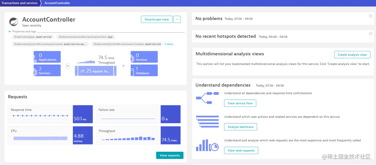 Dynatrace还能自动识别服务,并提供更精细的检测数据,为开发或运维人员定位问题,带来了极大的帮助。