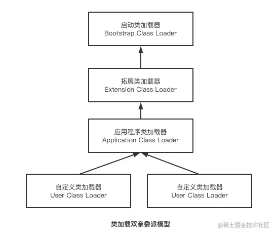 CLASSPATH或-Djava.class.path所指定的目录下的类和 jar 包。 - 自定义类加载器:负责加载用户自定义包路径下的类包,通过 ClassLoader 的子类实现 Class 的加载。