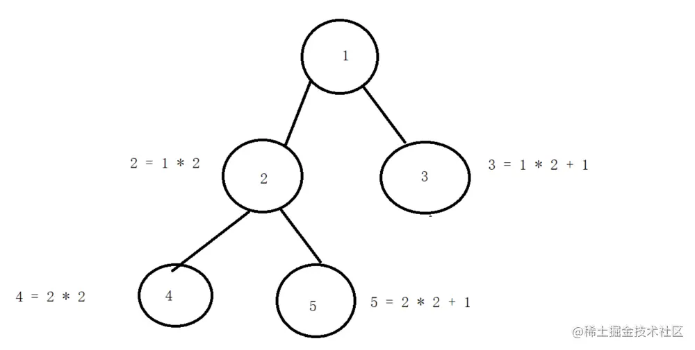 假如,我们定义root节点的序号为rootCode,左节点的序号为 lCode,右节点的序号为 rCode。会出现 等式关系 lcode = rootCode * 2 rCode = rootCode * 2 +1。 切入正题,如果完全二叉树,节点的数量等于最后一个节点的序号。如上图,节点数量是5,最后一个节 点的code也是 5。