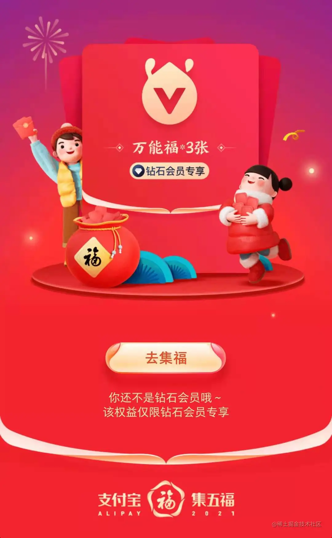 支付宝钻石会员可以直接领取三张万能福,其他级别的会员没有。