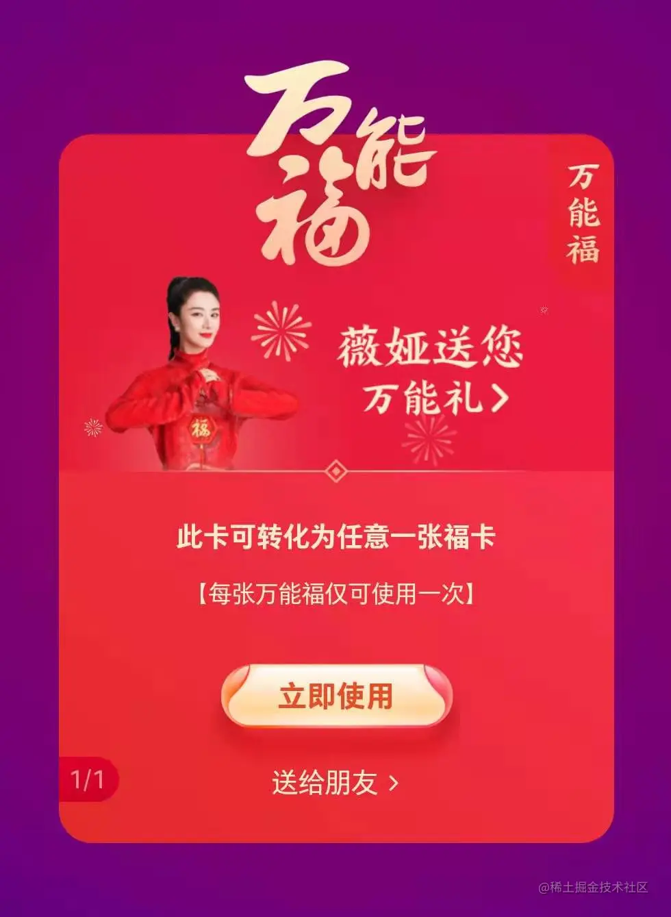 扫薇娅那个图片,有可能获得万能福,不过很难扫