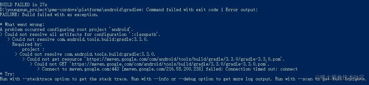gradle插件下载不下,找到依赖源(cordova项目根目录/platforms/android/build.gradle)换成国内镜像,如下是阿里源:https://maven.aliyun.com/repository/google/