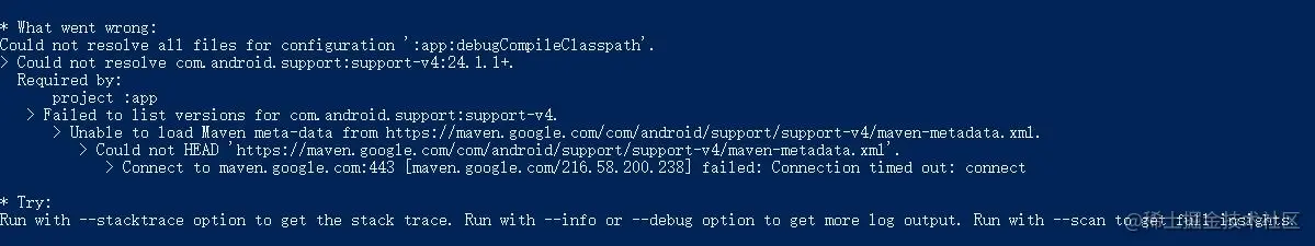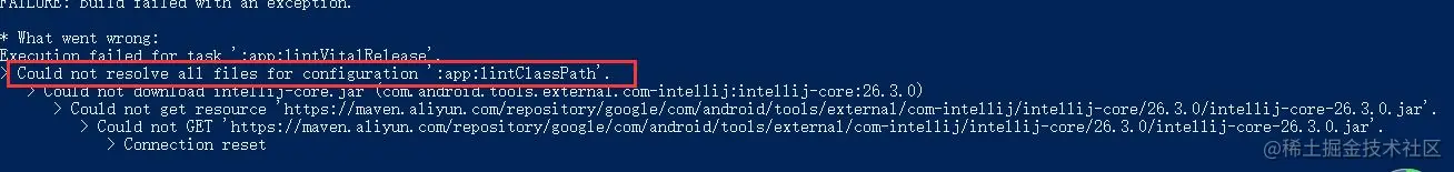 这里还存在打包过程中其他依赖下载不了的情况,像我打包release版的时候遇到下面错误: