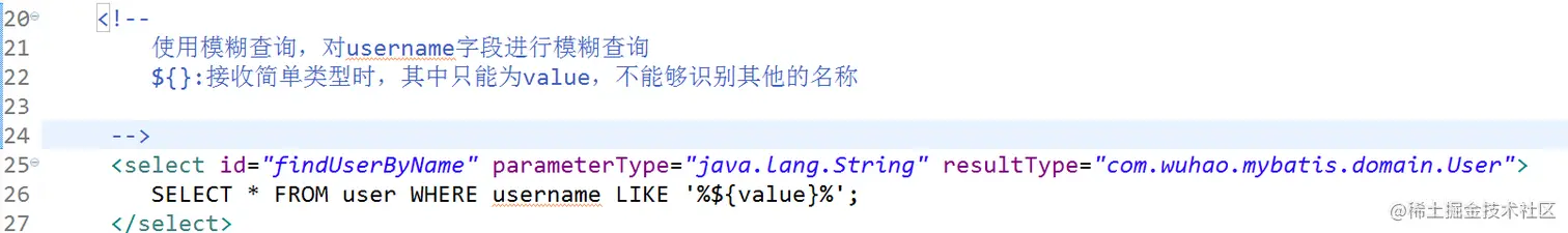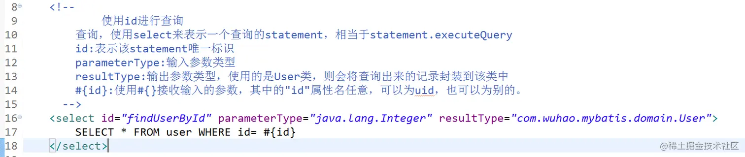 parameterType:指定输入参数的java类型,可以填写别名或Java类的全限定名。别名的用法在详细讲解全局配置文件的时候会讲解到,在那边可以配置