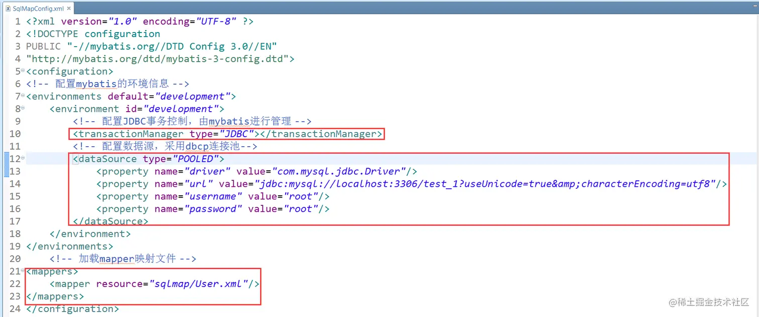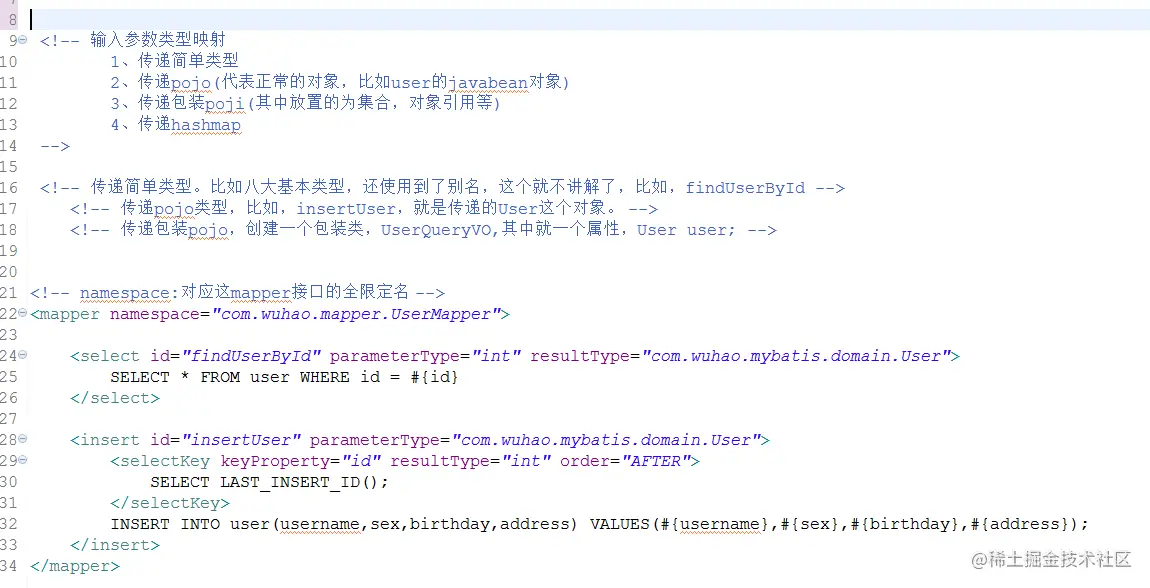 映射文件:通过对比原始jdbc连接数据库,其实mybatis中的映射文件就是对statement的硬编码进行改进,我们配置的都市statement需要的东西