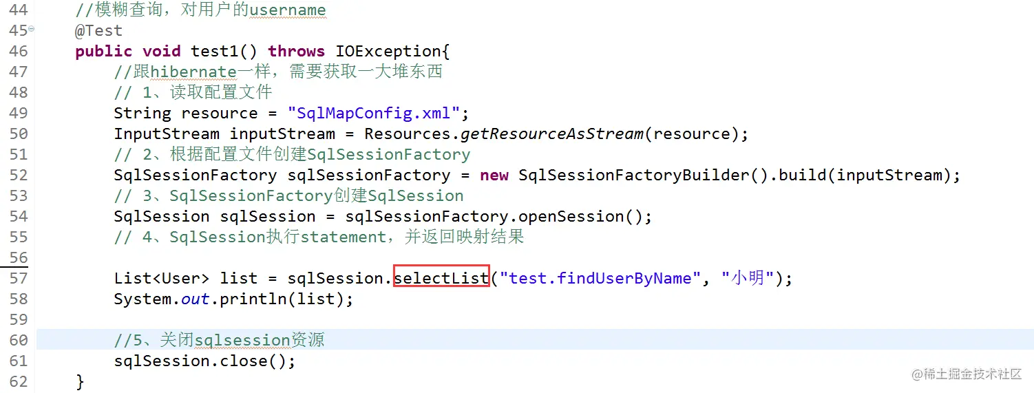 mybatis的基本用法就是这样,我想大家应该都有点感觉了,就是在映射文件中编写statement,将输入参数和输出结果进行映射,所以说mybatis是不完全映射的框架。懂了基本的用法之后,那么之后就会详细讲解其中的问题,全局配置文件当中的配置,映射文件中的详细配置(高级映射),延迟加载,一级缓存二级缓存等用法。