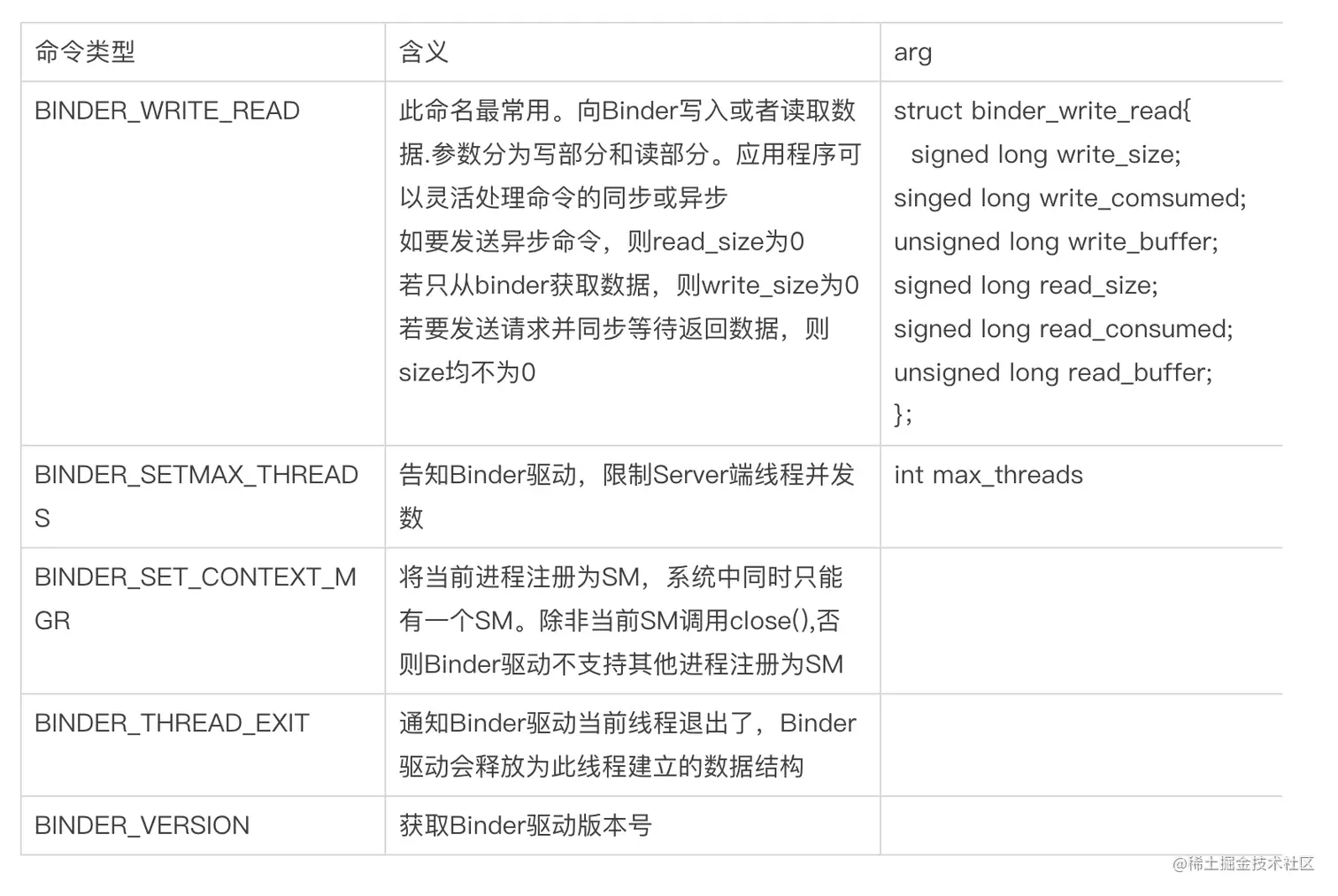 | Binder写操作命令字 | arg | |