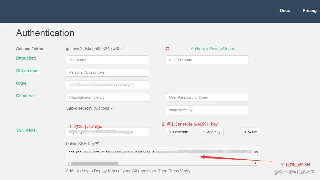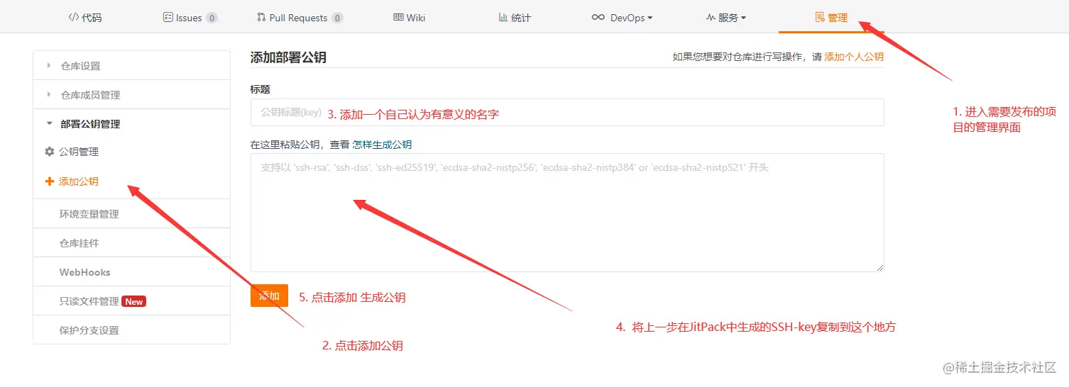 - 设置码云项目的部署公钥(如果是public项目,则不需要这个步骤)