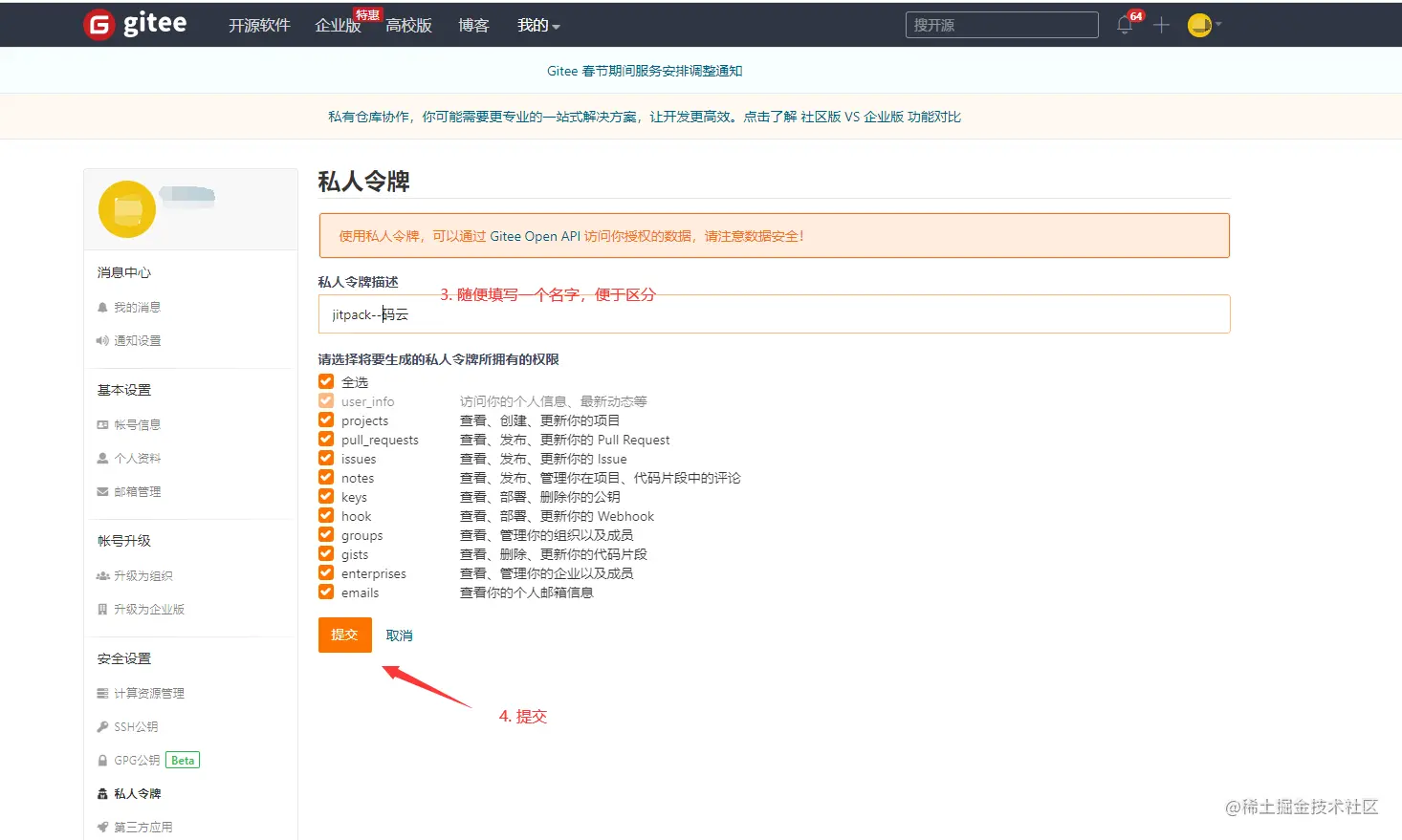 在码云上创建私有仓库,上传代码(码云支持将github代码导入),该步骤省略,请自行百度