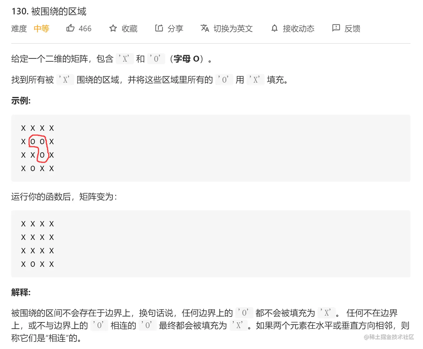 扫一遍矩阵,把所有的O都置为X。