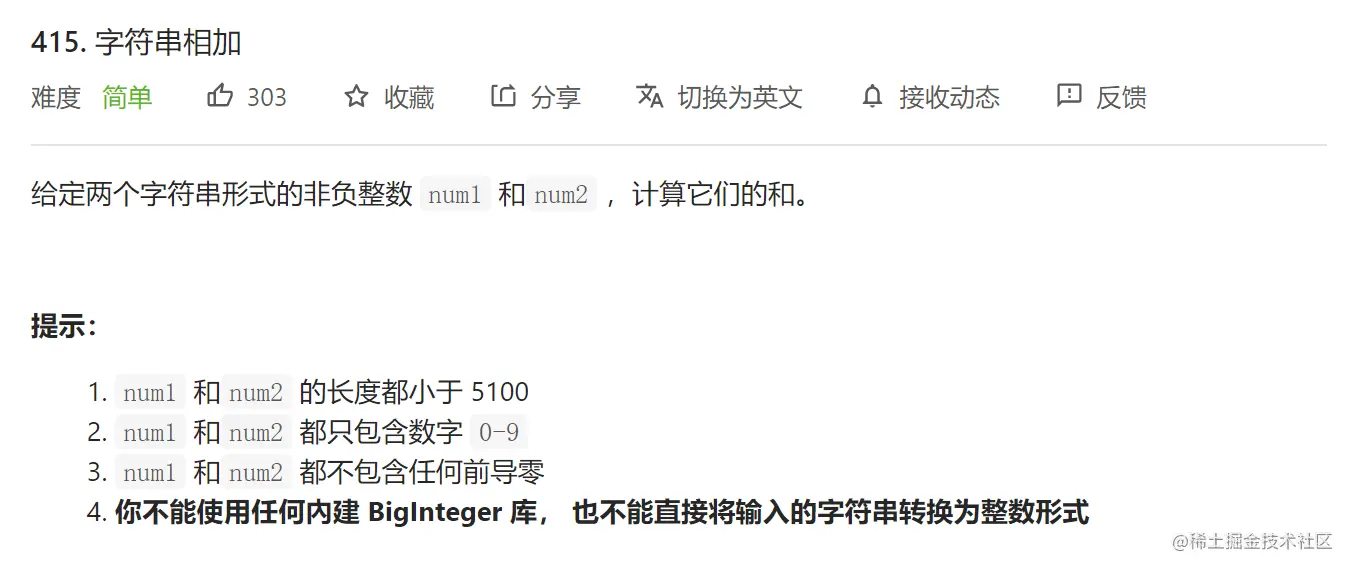 int digit1 = i < 0 ? 0 : (num1.charAt(i) - '0');//char转int,直接-’0‘