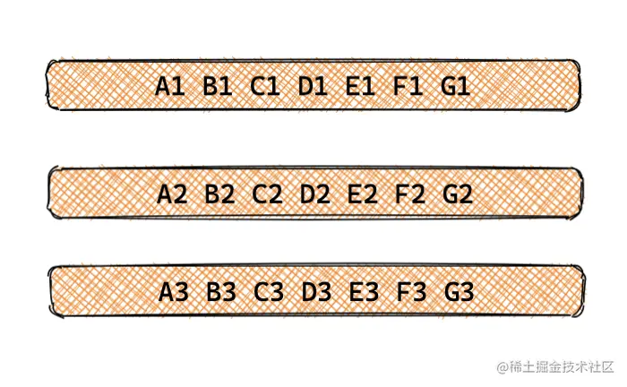 我们再看一下DB查询有哪些情况,假设行记录里有ABCDEFG七列数据:
