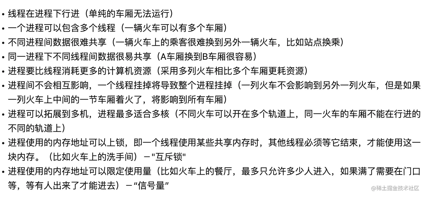 - 一个进程挂掉了不会影响其他进程,而线程挂掉了会影响其他线程