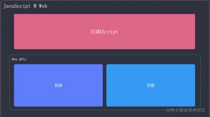 通常将ECMAScript看作是JavaScript的标准规范,但实际上JavaScript是ECMAScript的扩展语言。ECMAScript只是提供了最基本的语法,JavaScript在语言基础上进行了扩展。