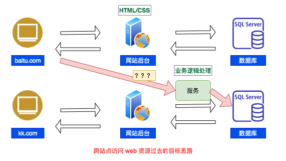 假设现在有三个巨头企业,他们分别维护 baitu.com,kk.com,taopao.com 三个站点,这些站点向服务端的交互都是通过 JavaScript 客户端实现的。某一天三家合并了,那就会涉及很多业务互通,比如 baitu.com 站点下想访问 kk.com 的一些数据。
