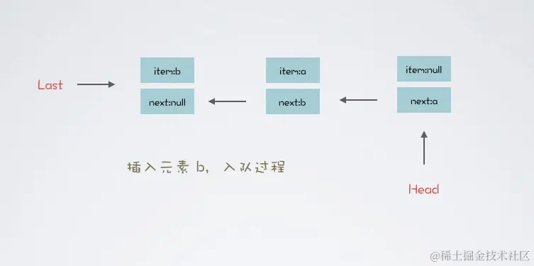 看到 head 和 last 元素,是不是对 LBQ 就有个大致的雏形了,这个时候还差一个结构体 Node