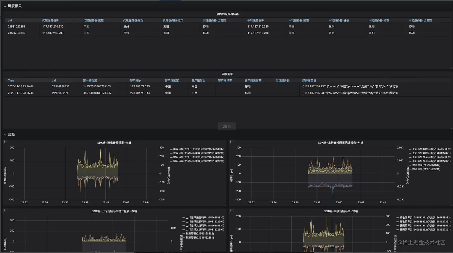下图皆是针对音视频问题排查场景做的一些仪表盘: