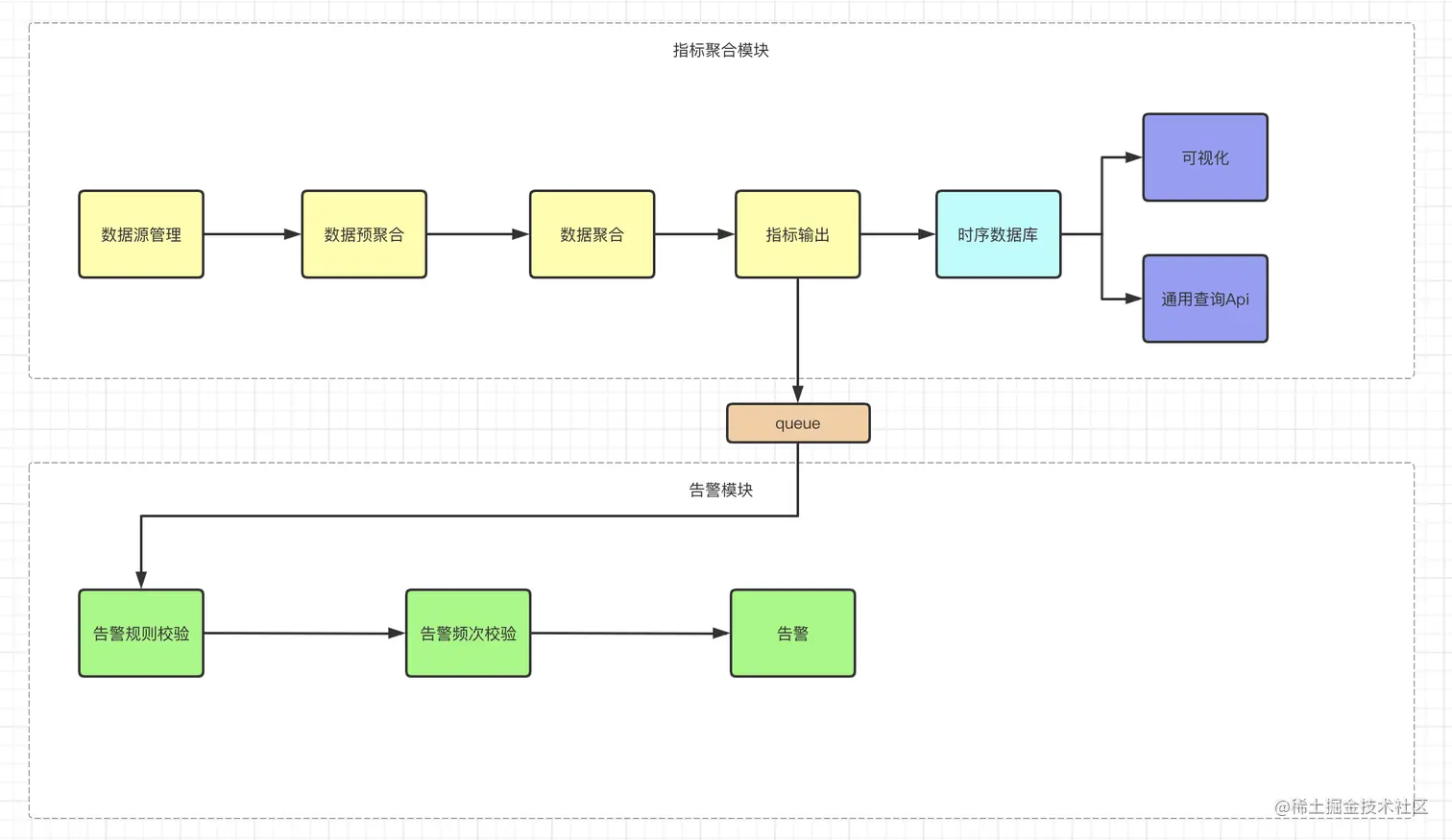 监控告警阶段分为指标聚合模块以及告警模块。