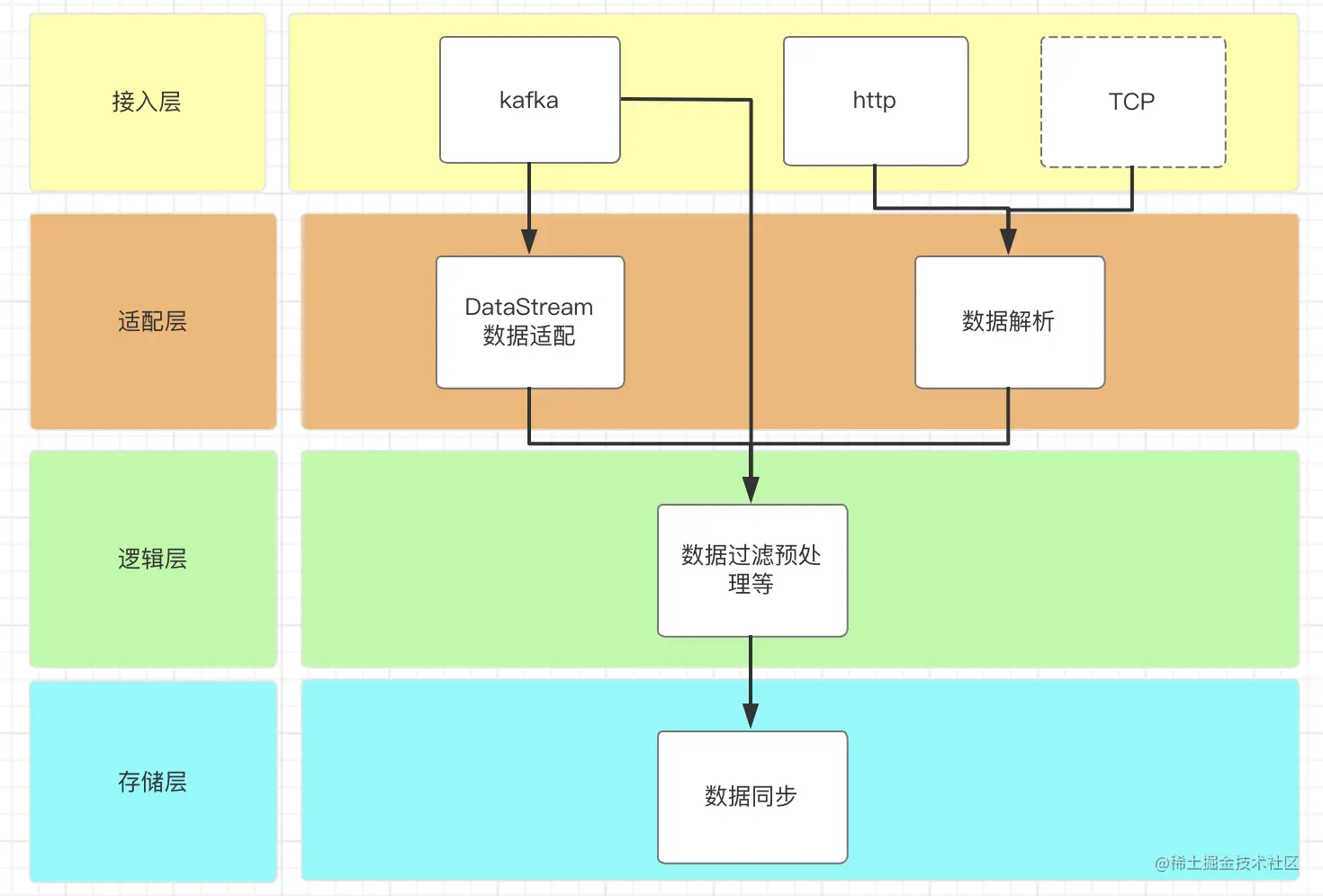 - 我们主要的数据来源为业务 SDK 和应用服务器,这些数据可以通过 HTTP Api、Kafka 两种方式接入采集服务。