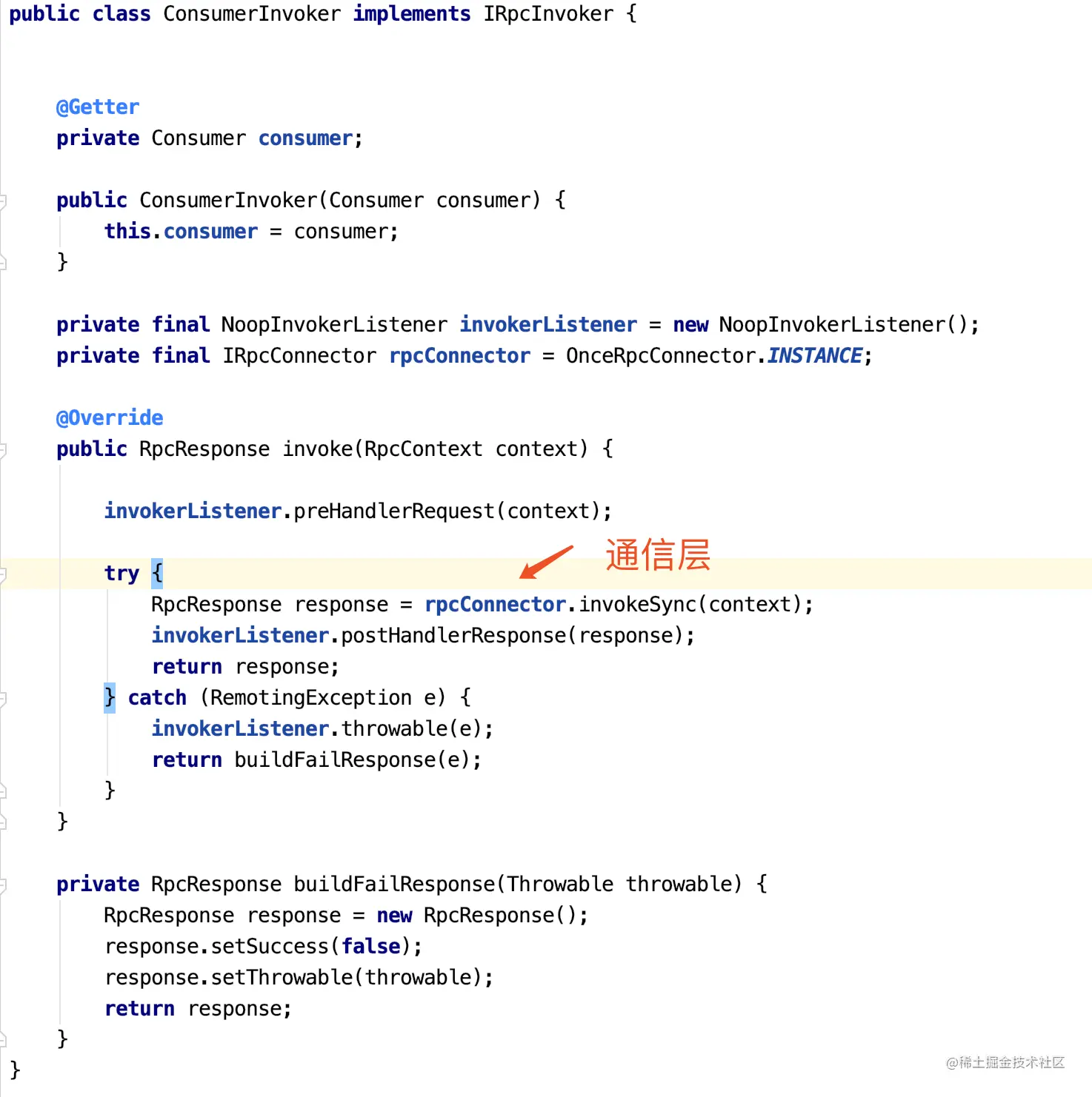 RpcInvoker这是真正的调用者,里面会请求网络通信。 RpcConnector、RpcProtocal这些都认为是网络通信的模块,我们框架中直接使用sofa-bolt也就看不到协议。
