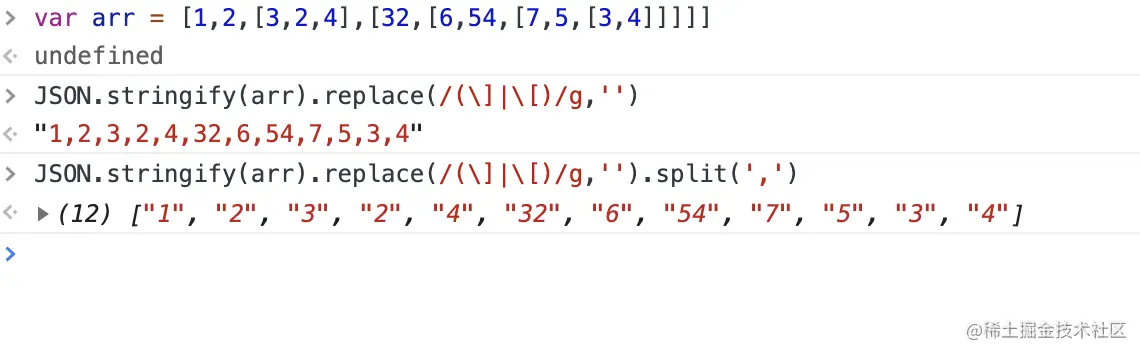 var arr = [[1, 2, 2], [3, 4, 5, 5], [6, 7, 8, 9, [11, 12, [12, 13, [14]]]], 10]
