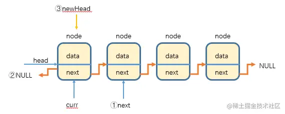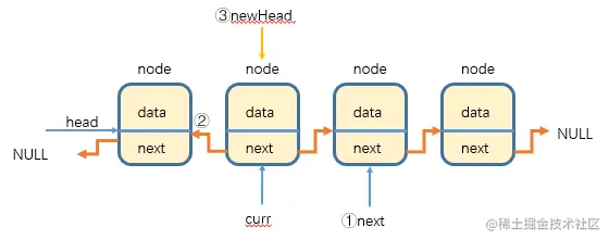 // 第三步:指定新的头结点的下一结点为当前处理的结点