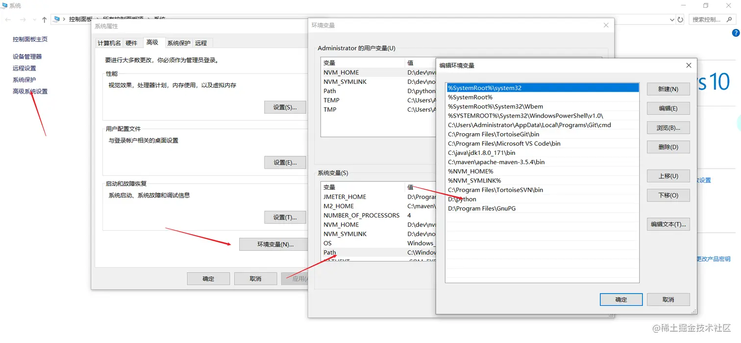 Python安装的路径添加值系统环境变量的path中,如下图所示 - 检测环境变量,