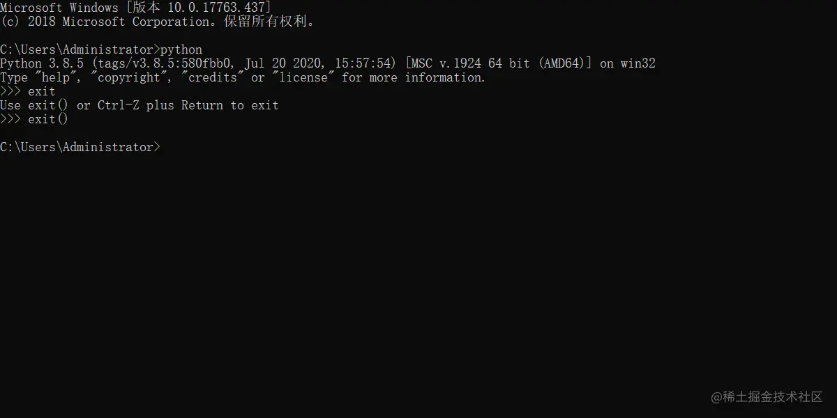 window使用快捷键win+r输入cmd然后输入python,环境配置正确如下显示