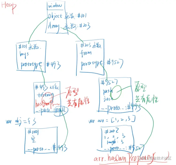 obj 和 arr 都有一个隐藏属性 --proto--