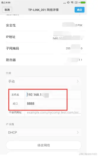 手机需要和电脑在同一个局域网下,所以在电脑上通过cmd敲命令ipcofig查看IPv4 地址,打开手机正在连接的wifi,修改网络设置