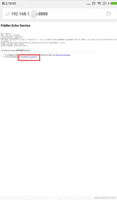 使用手机浏览器访问http://【电脑IP地址】:【fiddler设置的端口号】如1192.168.1.xxx:8888