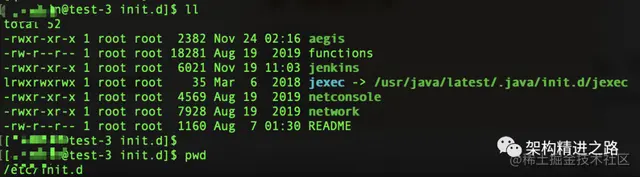 /etc/init.d 是 /etc/rc.d/init.d 的软链接(soft link)。可以通过 ll 命令查看。
